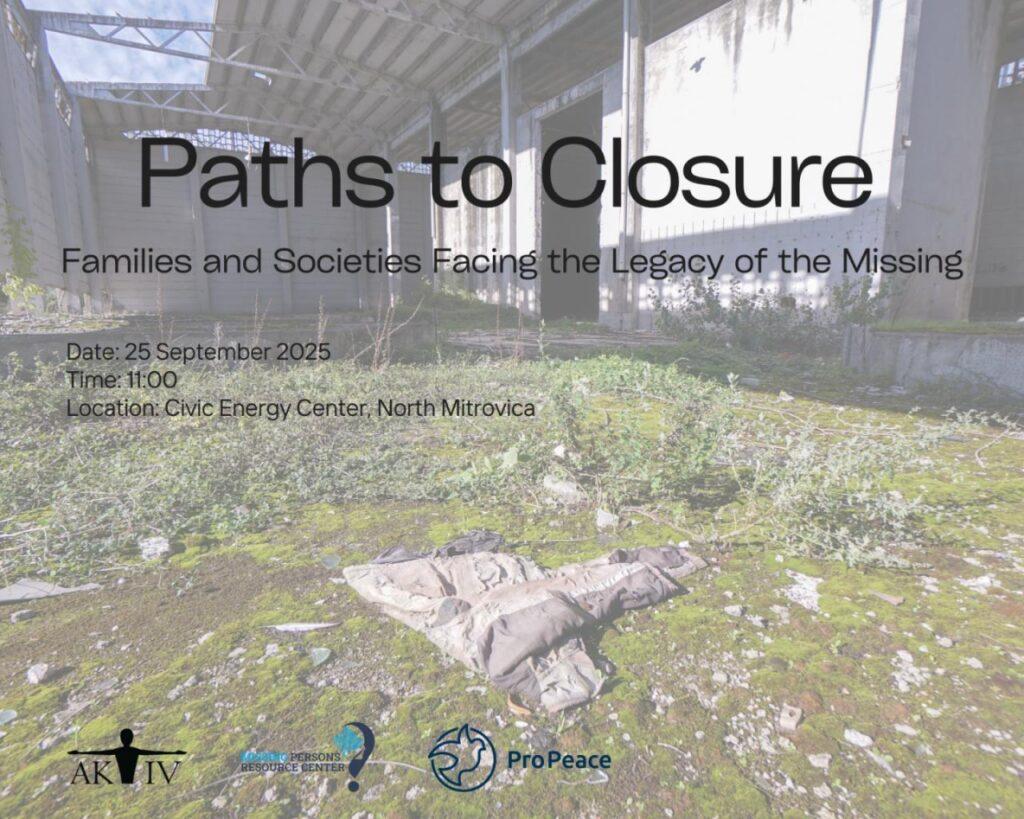 Kako bi se odgovorilo na ove izazove i očuvala uspomena na nestale, NVO Aktiv, Pro Peace Kosovo, Resursni centar za nestala lica (MPRC) organizuju panel diskusiju sa predstavnicima porodica i civilnog društva sa Kosova. Događaj će predstaviti aktuelne napore, istražiti mogućnosti za saradnju i potvrditi humanitarni imperativ da se razreši sudbina nestalih.